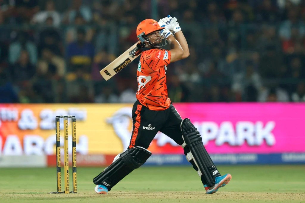 Phil Salt continued plucking blinders at the deep as he dismissed Ishan Kishan with a one-handed, full-length dive. The momentum that SRH had built looked to be crumbling as SRH’s middle order was decimated. 200, which is an extremely chasable total at Bangalore, looked like it was slightly out of reach. But in came Aniket Verma, bludgeoning his way to an 18-ball 43. It was ball-striking of the highest order. Strong base, staying low, beautiful sync of the shoulders and hips, and a still head allowed him to get power and distance through the ball.